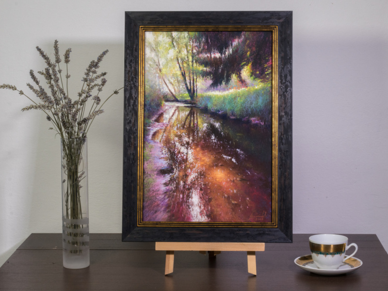 Zarámováním mých originálních děl si nemusíte jen ozdobit stěny – přetvoříte svůj prostor na skutečnou galerii! Rámování obrazů Vám dává možnost vyjádřit svůj styl a dotvořit atmosféru místa, kterou toužíte mít. A co víc, použitím antireflexního skla vyšší kvality zajistíte, že vaše obrazy budou vždy v nejlepším světle. Toto sklo nejen minimalizuje odlesky, ale také chrání vaše dílo před UV zářením, což zaručí, že barvy zůstanou živé a svěží po dlouhá léta.